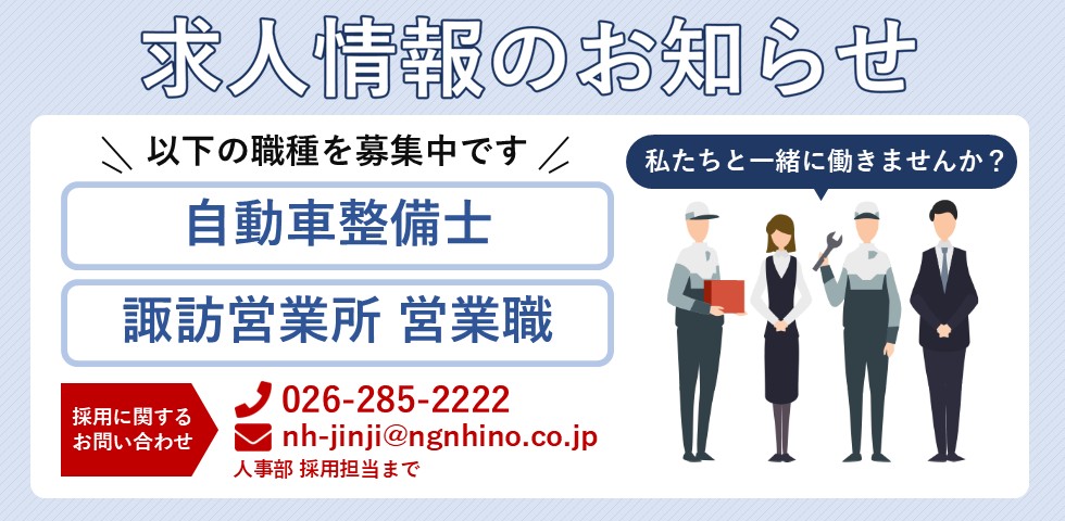 私たちは長野県をテリトリーとし日野自動車トラック・バスの商品・サービスを提供しています お客様のビジネスを支えるトラック・バスが常に安定して稼働できるよう、全面的にサポートいたします。 INFORMATION 会社案内 創業日、資本金、年間売上高、従業員数など当社の概要を掲載しております。 詳細を見る 支店・営業所 営業時間、連絡先、マップなど拠点情報を掲載しております。 詳細を見る 商品情報は日野自動車公式サイトをご覧ください RECRUIT 採用情報 地域社会の一員として 最新の求人状況、募集要項を掲載しております。 求人状況を見る お知らせ 2025年11月25日 中学生向け「自動車整備士のお仕事セミナー」を開催しました! 2025年11月18日 ノーネクタイ通年実施のご案内 2025年09月20日 弊社飯田支店がリニューアルオープン致しました お知らせ一覧を見る